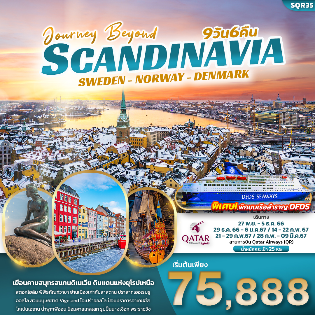 เมืองโคเปนเฮเกน – น้ำพุเกฟิออน – ป้อมคาสเทลเลท – รูปปั้นนางเงือก – พระราชวังอมาเลียนบอร์ก – พระราชวังคริสเตียนบอร์ก – หอสังเกตการณ์ราวด์ทาวเวอร์ - ถนนคนเดิน Strøget ท่าอากาศยานโคเปนเฮเกน - ท่าอากาศยานนานาชาติฮามัด ประเทศกาตาร์ แวะพักเปลี่ยนเครื่อง |